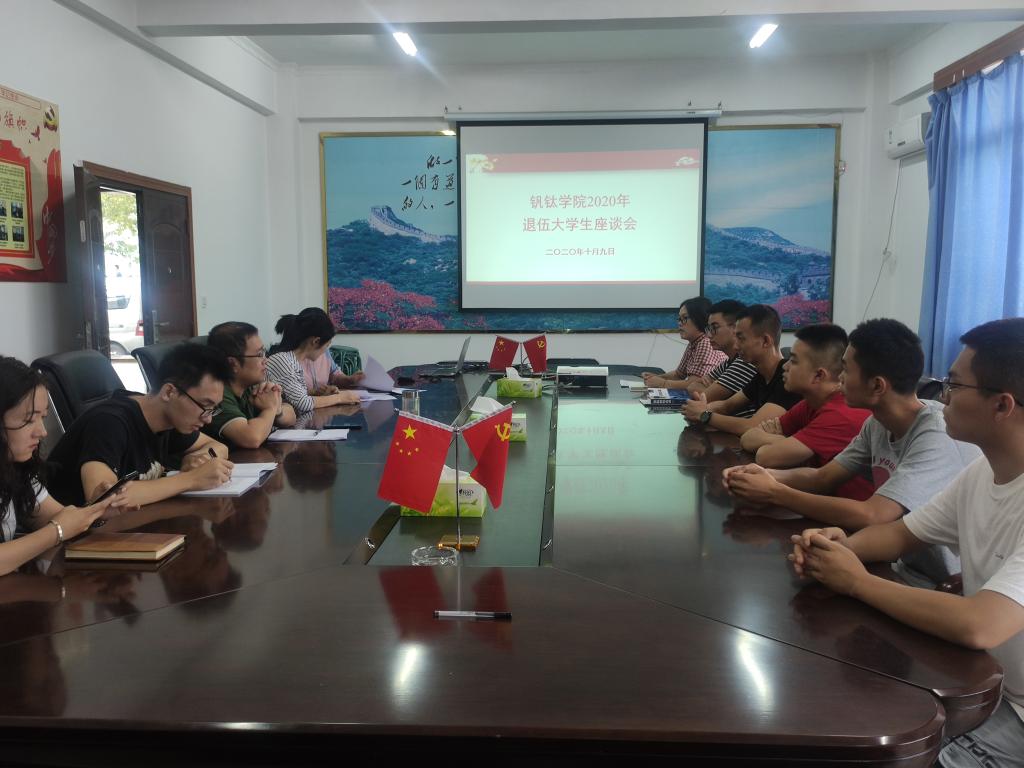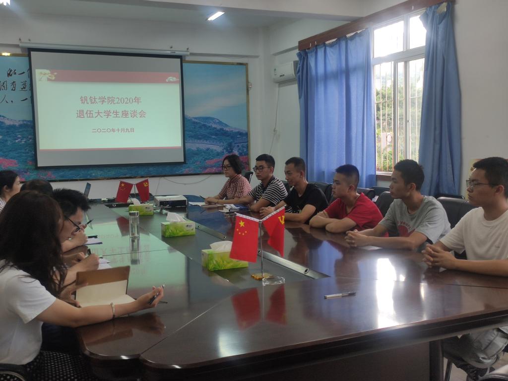 10月9日下午,公司在励志楼一楼会议室召开关于退伍复学员工座谈会,公司经理助理兼办公室主任安昀、员工科科长李宏、分团委书记刘甜甜、19级辅导员江冉、20级辅导员王华云出席本次会议,退伍复学员工参与本次会议。