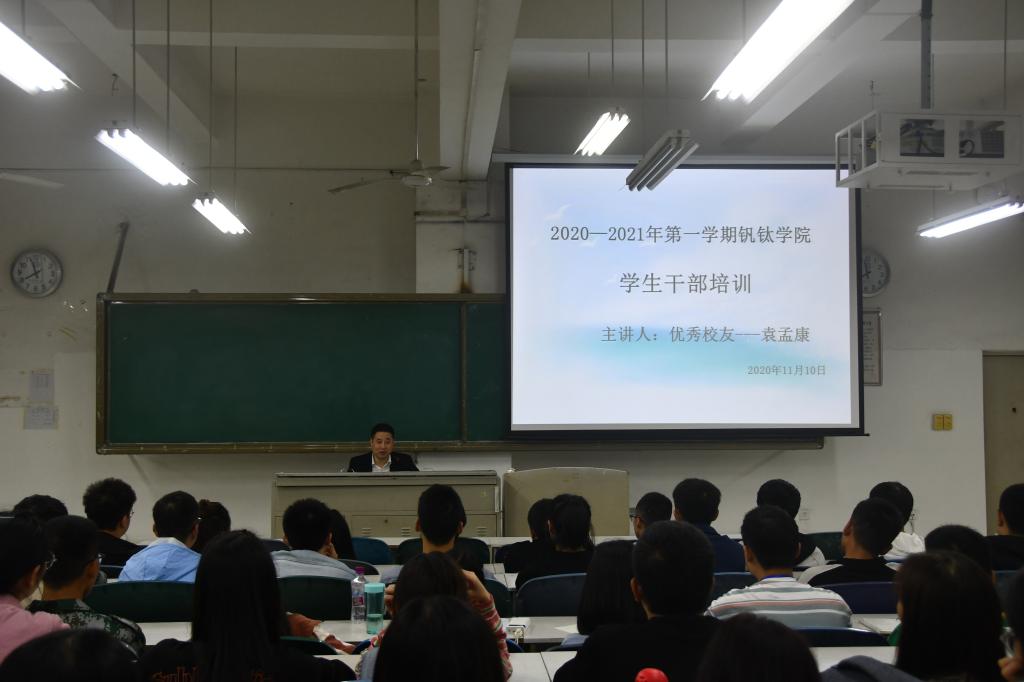 11月10日晚,公司于二教101开展了干部培训大会,本次大会邀请到了03级优秀员工—袁孟康师兄作为本次大会主讲人,员工科科长李宏作为嘉宾出席,主席团全体成员以及员工会全体干部参加。