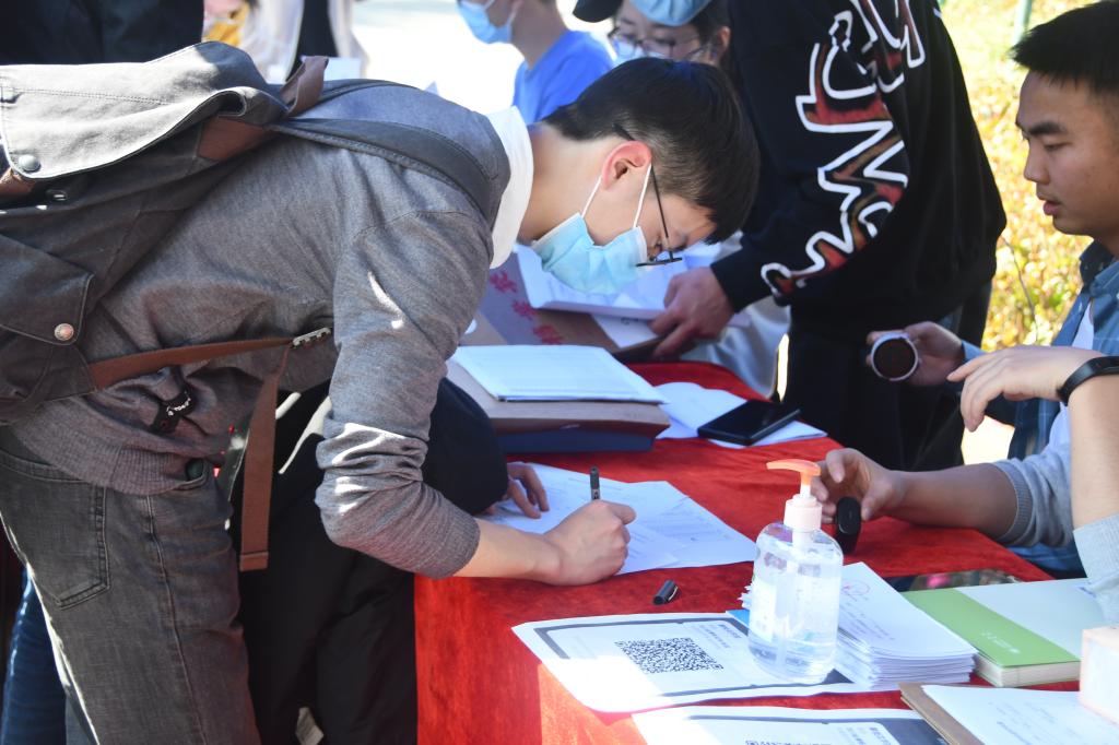 由于目前疫情防控还在继续,同学们在返校途中仍要做好个人防护措施。在志愿者的引导下,同学们有序地按照报道流程进行报道,志愿者也热情的为同学们办理返校手续,让同学们更快的完成报道,也为校园安全提供了保障。