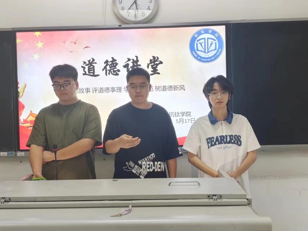 主持人邓粤巧带领我们开启了活动的第一项,三位来自2022级的同学为我们带来了诗歌朗诵。他们通过诗歌形式分享了自己对诚信的看法。活动第二项雷永老师为我们带来了道德故事的讲解,在讲解过程中,雷永老师提问同学相关道德问题,同学们也在踊跃参加,积极回答问题,参加了的同学都获得了一份奖品。活动的最后,主持人播放了一个片段,把先进典型的道德故事形象化、具体化,同学们在受到先进典型的强烈感染后,自觉效仿、主动践行。