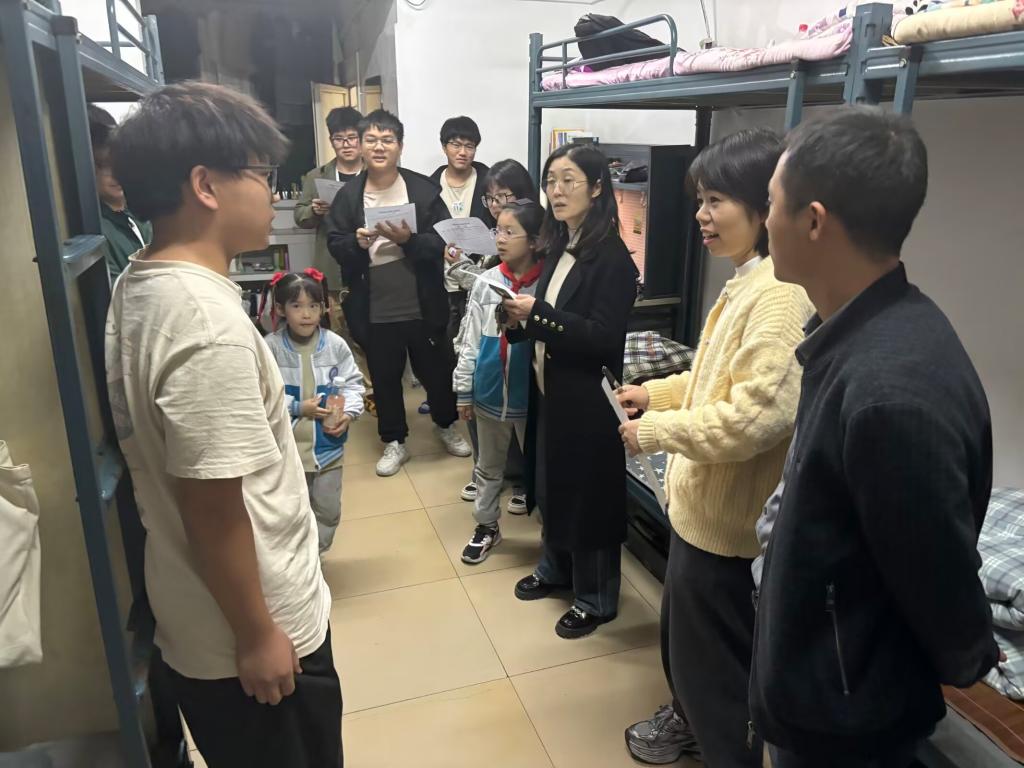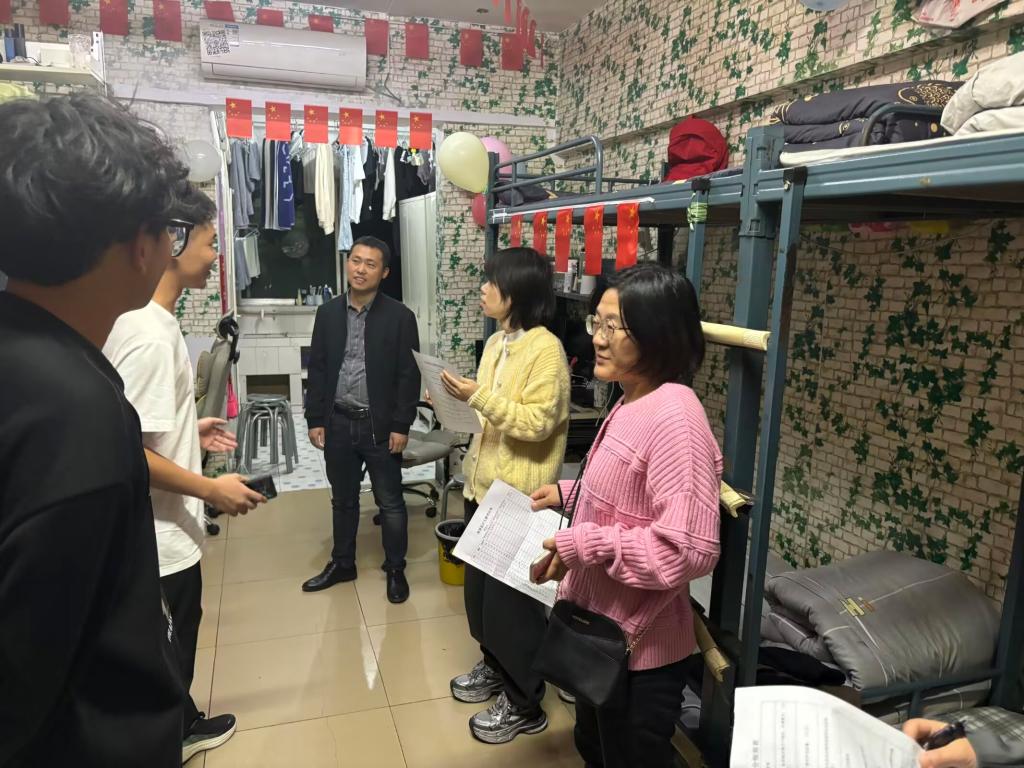 11月29日晚,比赛迎来最后的打分评选阶段,比赛评委由公司党委副书记、纪委书记蒲洪、员工科科长李宏老师和辅导员鲍丽莹、王婷、孙尚、朱艳芳老师,以及yl1111永利集团团委员工会主席团与员工代表组成,以平时查寝的检查标准作为基准,依据创意、整洁度、文化契合等多维度严格打分。大赛评委团深入各参赛寝室,实地开展评审工作。期间,评委们与同学们热切互动,围绕寝室设计理念深入交流,认真聆听同学们的创意构思与灵感来源。同时,评委们还细致询问同学们日常学习生活状况,言语间满是关怀,尽显亲切温情,现场氛围热烈融洽。