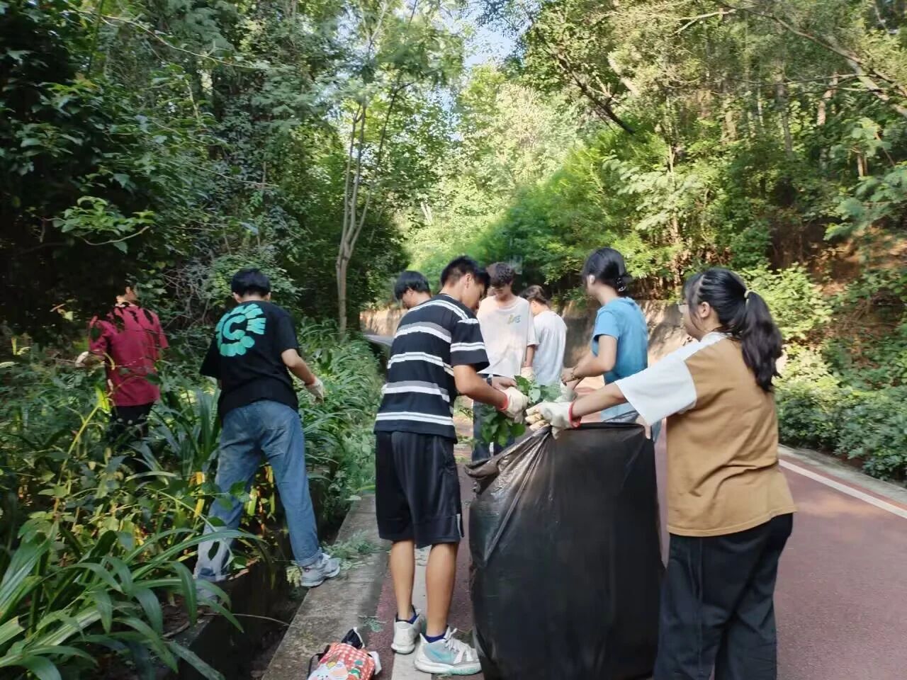 活动当天,师生们徒步前往攀枝花英雄纪念碑,共同缅怀为攀枝花三线建设付出巨大牺牲的革命先烈。随后,公园讲说员为师生们详细讲解了攀枝花英雄纪念碑的内涵寓意,并带领大家参观了大事记碑、信箱雕塑、奇石碑林等纪念设施。参观完纪念碑以后,同学们观察到纪念碑附近杂草丛生,于是在老师带领下分工协作除草,除草完毕以后同学们将所清除的杂草等进行整理,并装入可降解的塑料垃圾袋当中,由攀枝花公园的工作人员运往相关机构进行处理,维护了纪念碑干净整洁的环境。