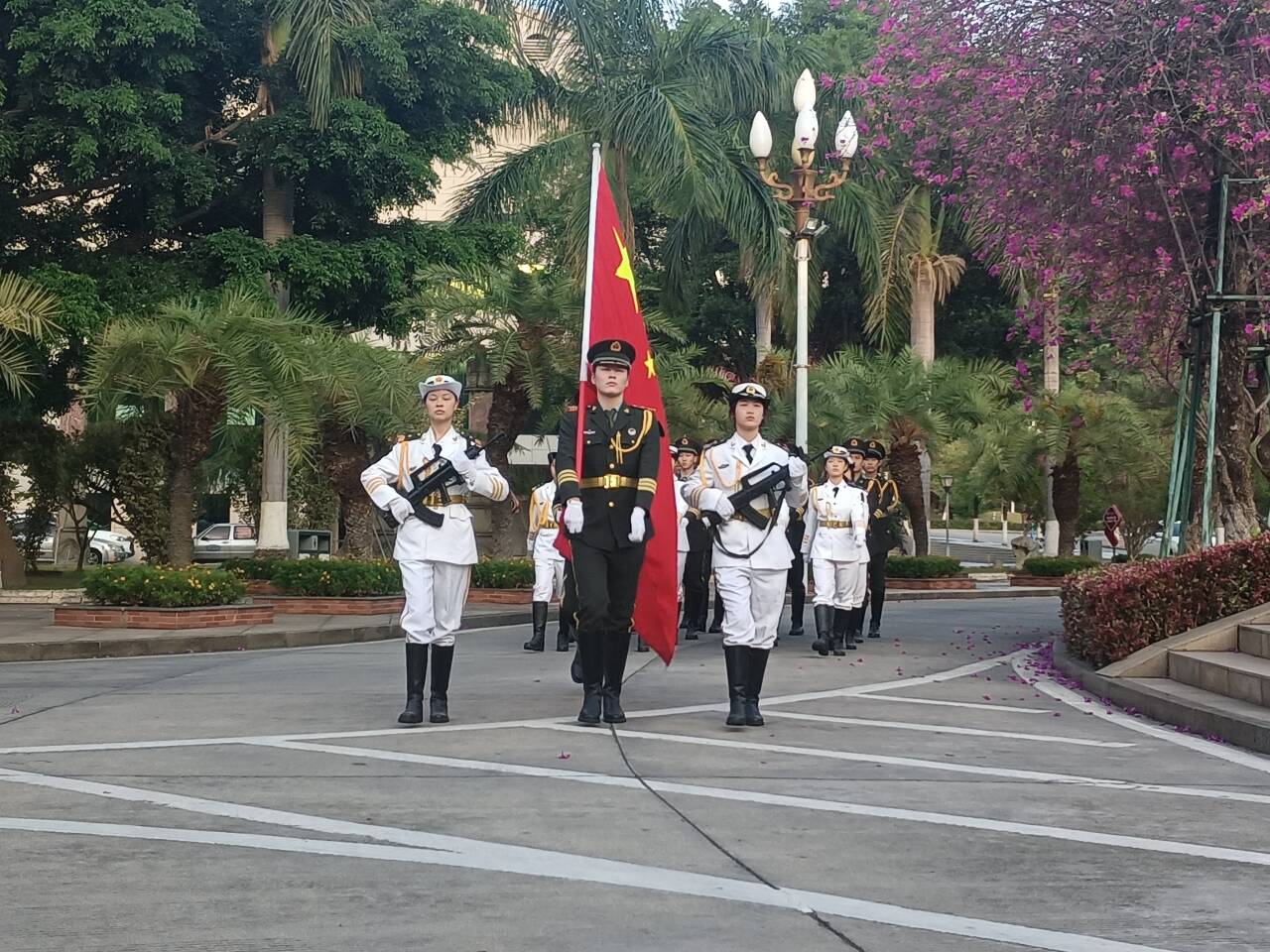 随着主持人宣布升旗仪式开始,国旗护卫队迈着整齐的步伐,精神抖擞地走向升旗台。在庄严的国歌声中,鲜艳的五星红旗冉冉升起,全体师生肃立,行注目礼,共同见证这一庄严时刻。随后,校旗和院旗也相继升起,伴随着激昂的校园之歌,彰显着公司的凝聚力和向心力。