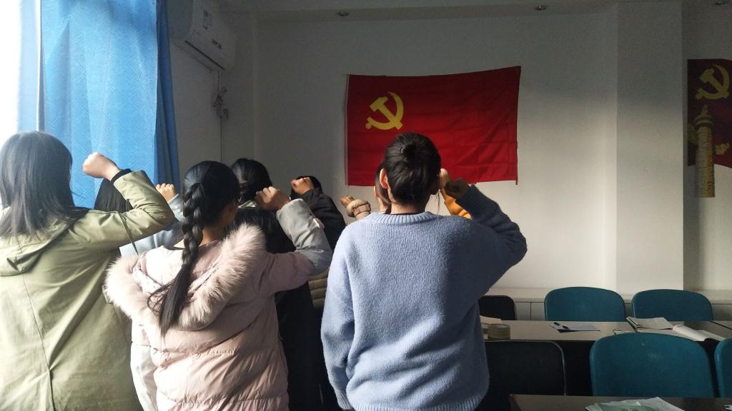 会上刘玉梅、杨华琳、李晓庆、汪晓、马佐凤、袁兴平6名同志汇报了各自在生活上、学习上、工作上的具体表现和不足,紧接着由党支部书记带领该6明同志对着党旗宣誓,并表明了自己的态度和决心,表示将进一步接受党组织考察。随后,该6名同志的入党介绍人对他们的表现情况进行了评价并对其是否吸收为预备党员表明态度:同意其成为预备党员。