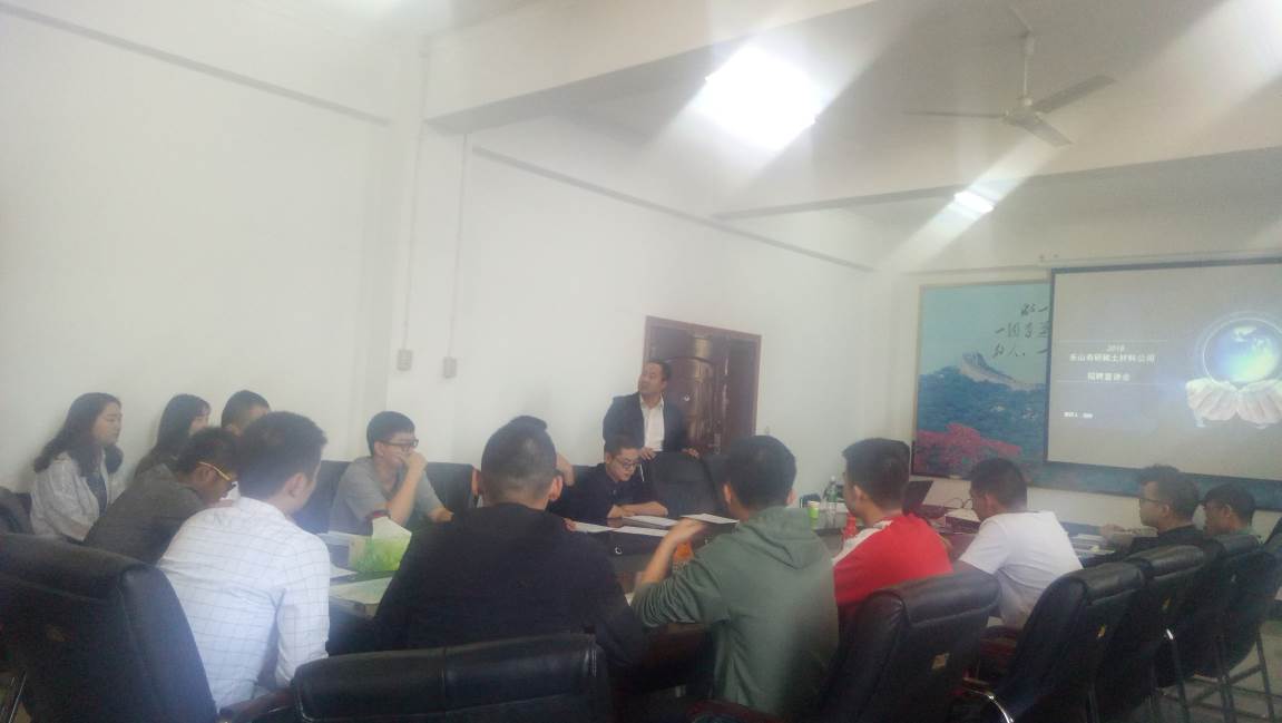 乐山有研稀土新材料有限公司yl1111永利集团专场招聘会于2018年10月26日10:00-12:00在砺志楼1楼会议室顺利举行。yl1111永利集团副经理赖奇、员工科科长李宏、毕业班辅导员沙彩云出席本次招聘会,yl1111永利集团员工参加了本次招聘会。
