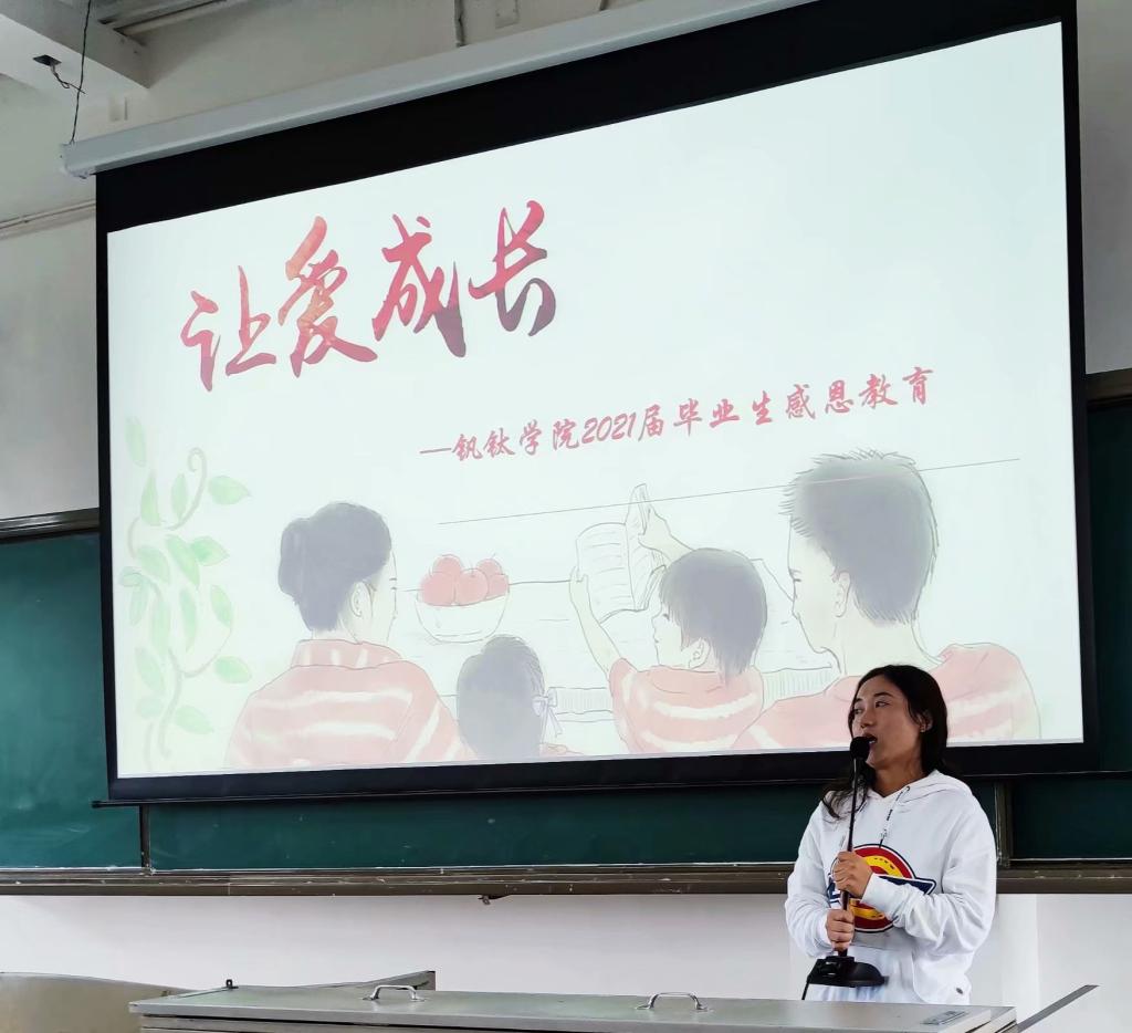 10月29日上午,公司于2教2—4举行了yl1111永利集团2021届毕业生感恩教育“让爱成长”主题讲座。17级辅导员沙彩云老师担任本次讲座主讲人,经理助理兼办公室主任安昀老师作为嘉宾出场,17级部分员工准时参加。
