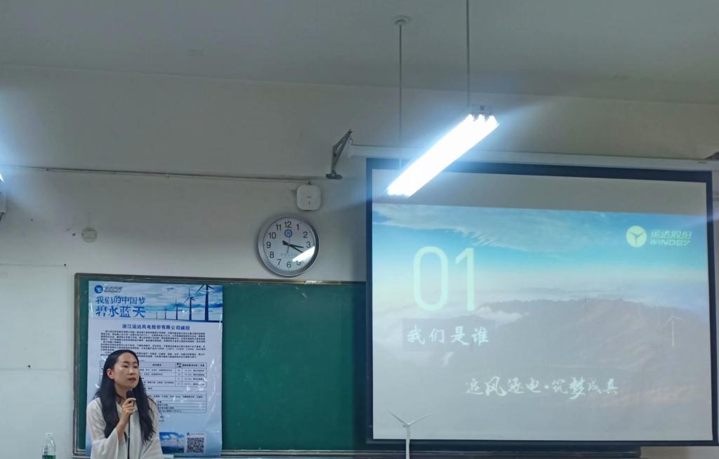 10月30日下午,浙江运达风电有限公司与公司在二教204联合举行了校园招聘宣讲会。人事专员李燕担任此次活动的主讲人,公司17级部分员工参加。