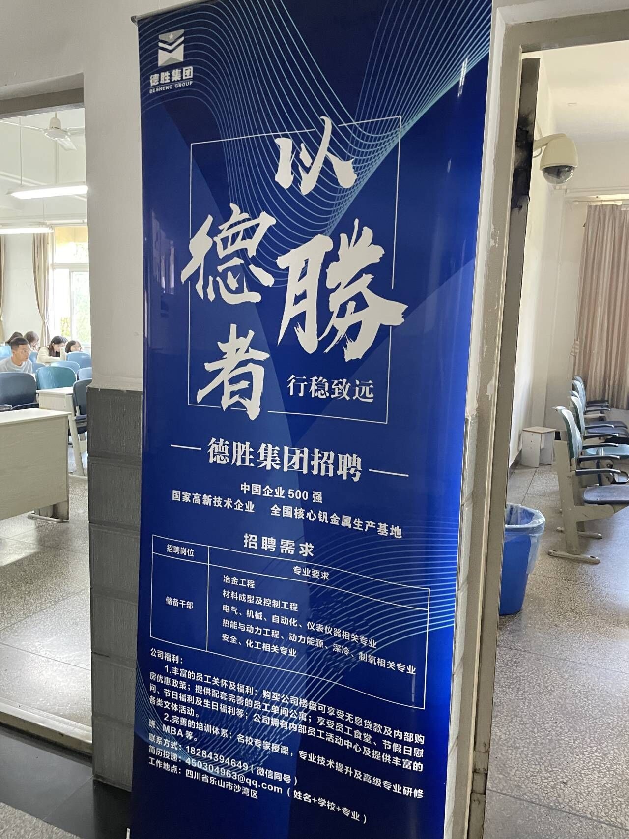 2023年10月18日上午十点,四川德胜集团钒钛有限公司(以下简称四川德胜集团)在二教2-211为公司2024届毕业生举办专场招聘会。公司冶金工程、材料成型及控制工程等专业的2024届毕业生参加此次招聘会。