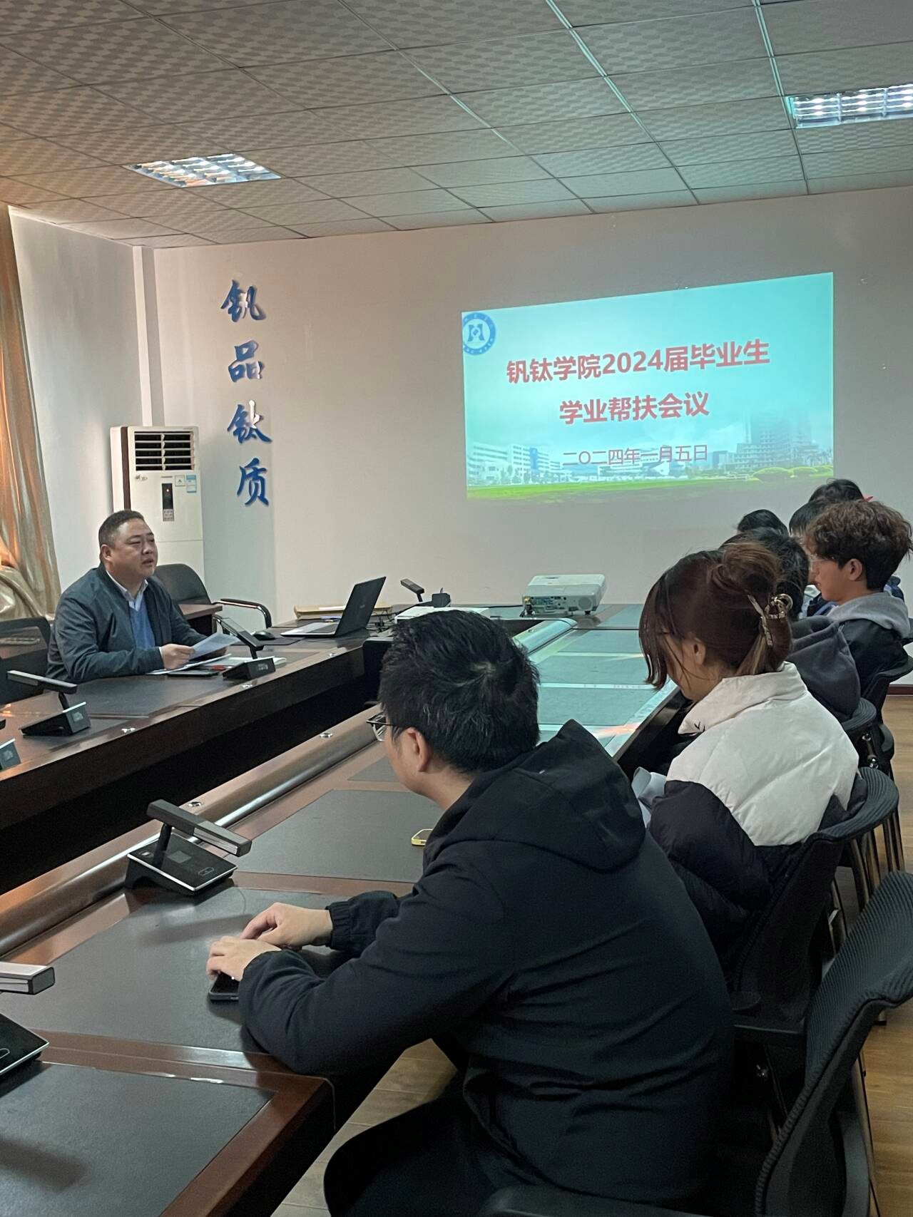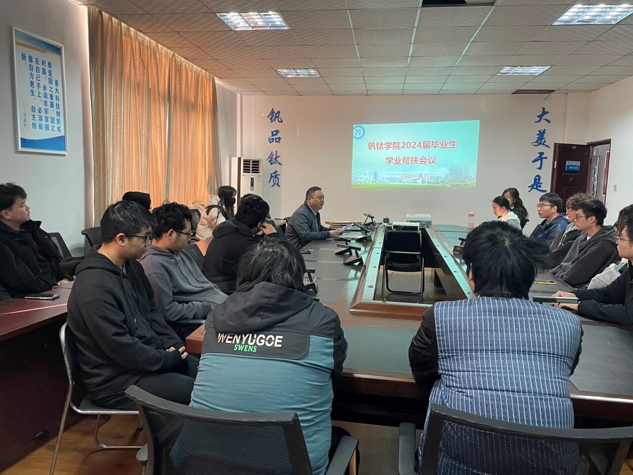 2024年1月5日上午,公司吴恩辉副经理针对2024届毕业生中学业困难的同学召开了一次座谈会。此次会议旨在深入了解这部分同学面临的学业挑战,提供必要的帮助和指导,以确保他们能够顺利毕业。