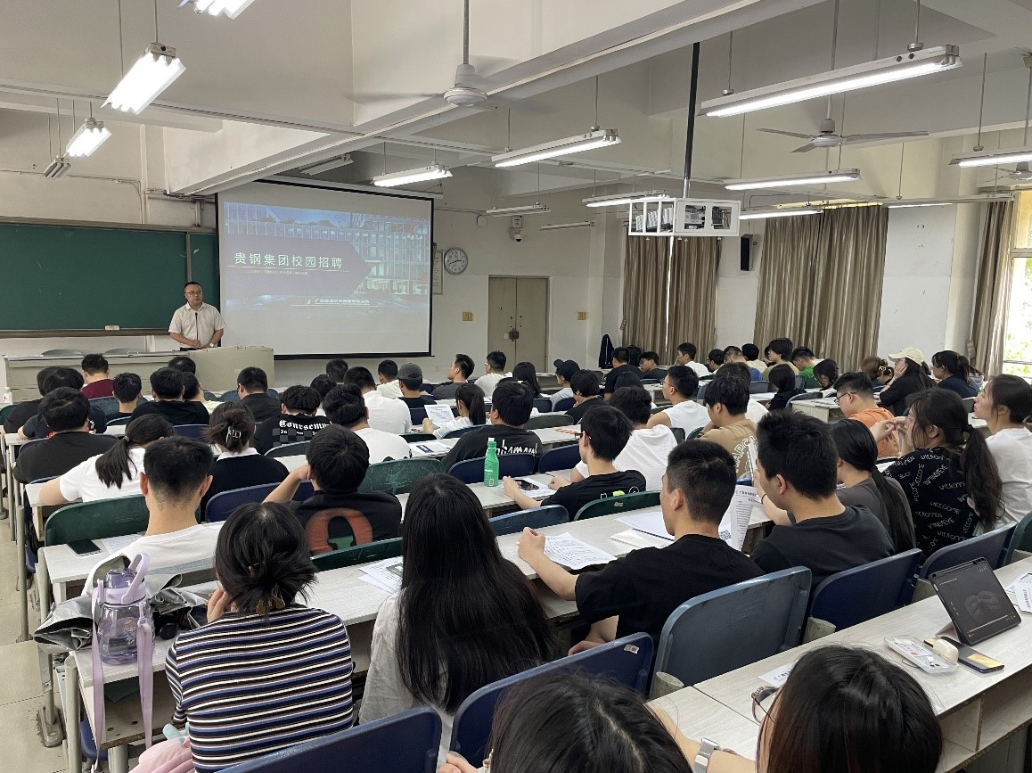 活动现场贵钢集团招聘代表白先生通过视频播放、PPT宣讲和现场海报宣传等方式,展示了集团的深厚人文底蕴和优势资源禀赋及高速发展历程,分享了集团的重要和紧急人才需求和各拟聘岗位的富有竞争力的薪酬标准与福利待遇及职业发展通道,凸显了集团在新时代新征程对人才的高度重视、关怀和渴求。