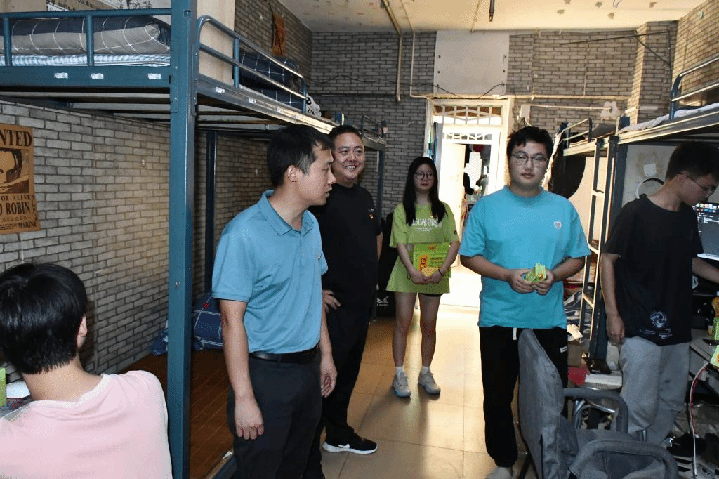 班子成员走访慰问员工,充分肯定了钒钛学子面对酷暑,坚持学习的自律心态;勉励同学们要保持吃苦耐劳的精神,面对短期的高温异常天气,做好防暑工作,保持良好心态,保证学习的高质量进行。同时,鼓励大家积极向2023届考研上岸的两个毕业寝室学习,以寝室作为加强学风建设的最小单位,共同树立远大目标,寝室成员相互监督、共同成长,争创文明优标寝室。