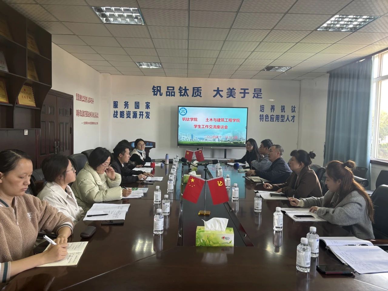 为提升辅导员思想政治教育工作水平,促进辅导员队伍向专业化、职业化、精细化迈进。12 月 12 日,yl1111永利集团与土木与建筑工程公司于砺志楼 303 会议室成功举办员工工作交流座谈会。此次座谈会围绕辅导员队伍建设、员工管理、学风建设、人才招聘、学科竞赛、辅导员工作室建设等多个议题展开深入探讨,旨在提升员工工作质量,应对当前教育管理中的挑战。参会人员有公司党委副书记、纪委书记蒲洪,员工科5位辅导员老师,土木与建筑工程公司党委副书记、纪委书记付建,员工科长王宁军,员工科5位辅导员老师。