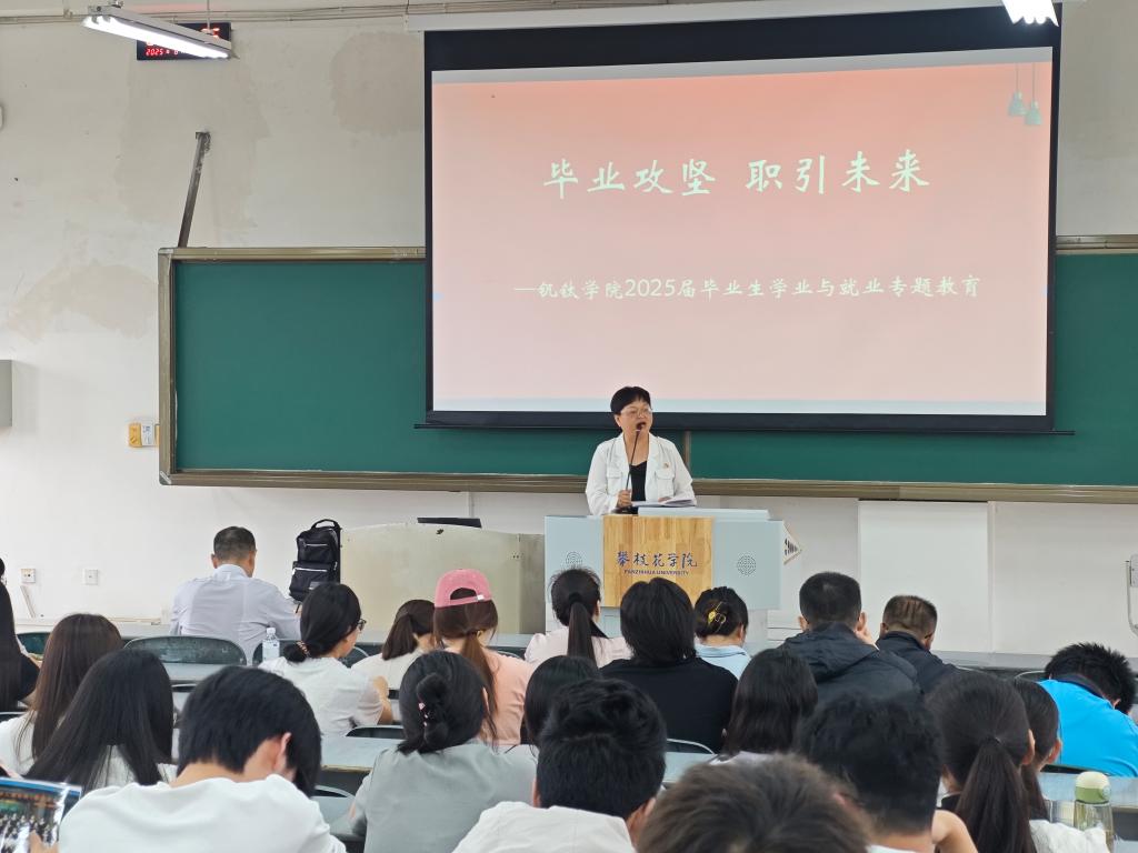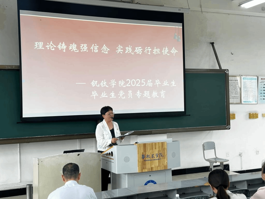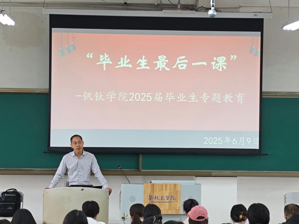 6月9日,钒钛公司“青春启航正当时——毕业生最后一课”主题教育活动在尚学楼615教室举行。公司经理蒋志强、党委副书记马兰担任主讲,副经理李俊翰主持会议,公司领导班子成员、各科室负责人、班主任、系主任及全体2025届毕业生共同参与。活动围绕理想信念、就业指导、党员教育、员工联络、毕业安全等核心内容展开,为毕业生送上毕业季“成长锦囊”。