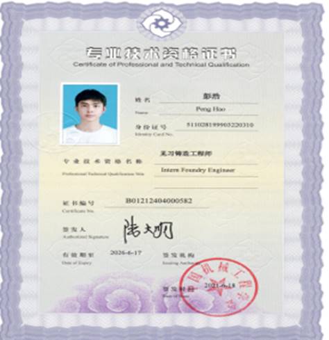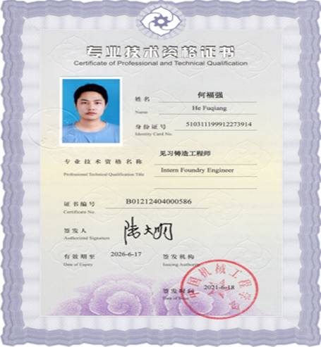 本次大赛组委会邀请了72所高等院校的材料成型与控制工程专业及相关专业的在校本科生及硕士研究生参赛。公司材料成型及控制工程专业2017级和2018级员工王鑫、邹浩威、罗羚尹、陈贵江、赵韩东、王静、彭浩、郭宇、何福强、刘泽棣、黄亚飞、杨金春在指导教师周洪、王振玲带领下,暂获3项全国三等奖。获奖同学也同时获得了见习铸造工程师专业技术资格证书。