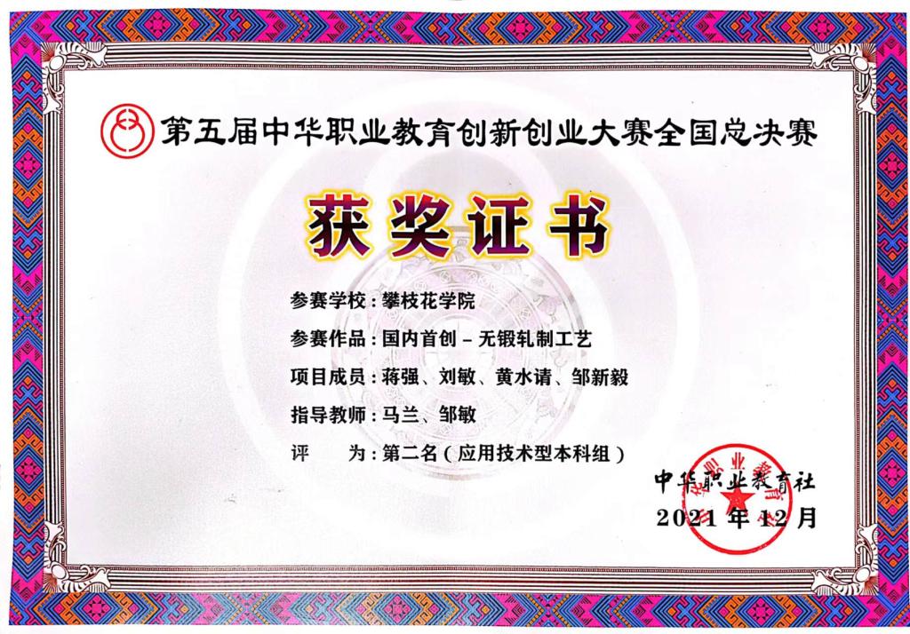 2022年6月26日,yl1111永利集团马兰教授带队参加中华职业教育创新创业大赛线上表彰大会四川省分会场现场会议。全国人大常委会副委员长、中华职业教育社理事长郝明金为表彰大会做书面致辞。来自全国30个省(区、市)的122所院校的135个项目(中职组45个、高职组45个、应用技术型本科组45个)通过线上总决赛的角逐,由公司教师马兰、邹敏指导的“国内首创-无锻轧制工艺”项目获得应用本科技术组二等奖。