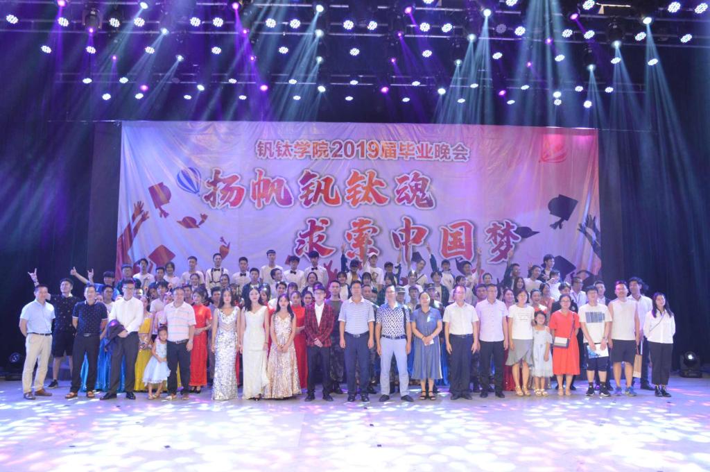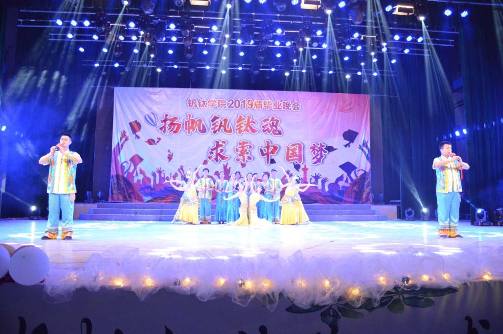 晚会上,钒钛教师代表余翔博士和优秀毕业生代表陈卫清向毕业生们表达了自己的祝福,希望大家前程似锦,一帆风顺。F.T.GIRLS&PSC舞团带来的开场舞“钒钛魂”点燃了全场,带动了全场的氛围。随后,歌曲《一首正儿八经的说唱》嗨翻全场,退伍军人带来的情景剧《代号:泰山》,木棉雅韵四重奏乐团带来的《奥芬巴赫天堂与地狱序曲》,齐舞《钒SHOW钛》、《SEE YOU AGAIN》等节目以新奇的角度,为观众们带来了一场全新的视听盛宴,将全场的氛围推向了一个又一个高潮。最后,晚会在老员工艺术合唱团带来的歌曲串烧《年少芳华》美妙的歌声中落下了帷幕。