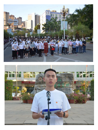 首先,由安昀主任宣布升旗仪式正式开始,在庄重的国歌声中和同学们注视的目光下,国旗护卫队脚踏正步,坚定而有力的走到旗杆下升起旗帜,全体师生庄严地行注目礼。接着由周玉杰同学就“自律攀大人”的主题在国旗下讲话。周玉杰分享了自己的学习经历,谈及自己在自律的帮助下获得了良好的精神面貌和优良的学习成绩,呼吁大家自律,争做自律攀大人,发扬勇攀高峰的精神。然后,蒋志强经理以建党100周年为主题,向同学们诠释了升旗对于每一个中国人而言是骄傲与自豪的,是一个国家的荣誉象征,旨在培养同学们的爱国主义情怀和追求理想的决心与毅力,蒋经理要求同学们要坚定爱国主义信念,争做一名合格的攀大人,以更加优异的成绩向党的百岁华诞献礼,并向同学们提出了殷切的期望,希望同学们早睡早起,加强体育锻炼,多参加集体活动;希望全体师生发扬“育创新人才,普钒钛华章”的创院理念,积极进取。