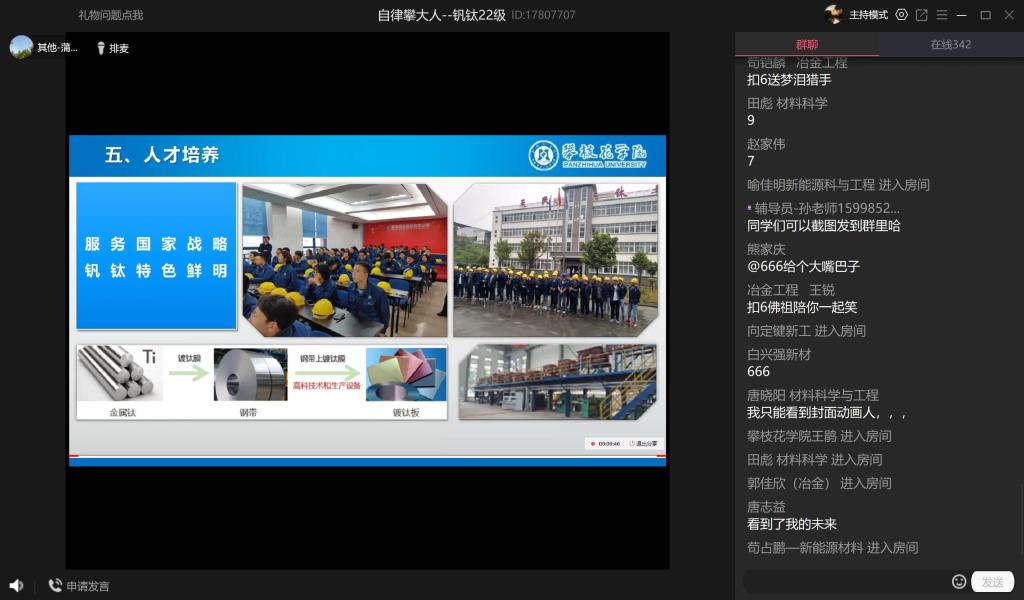 9月23日,公司举行了2022级新生线上开学典礼,副经理吴恩辉、党委书记王鹃、党委副书记、纪委书记蒲洪、员工科全体老师、2022级辅导员孙尚出席本次活动,2022级新生参加。