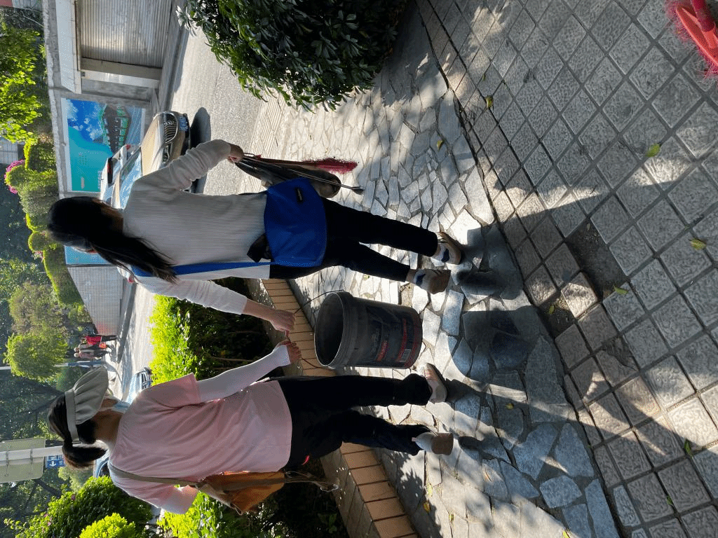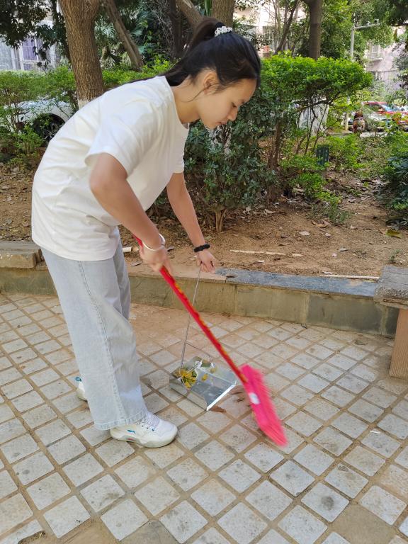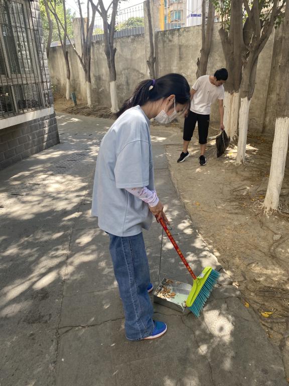 图2 yl1111永利集团员工周映含、林丽珍清扫小区内枯树叶