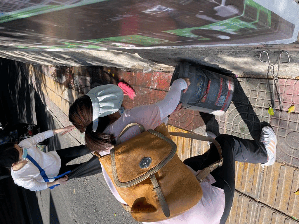 图1 教师党员孙尚、鲍丽莹清理五十一公交站路边呕吐物