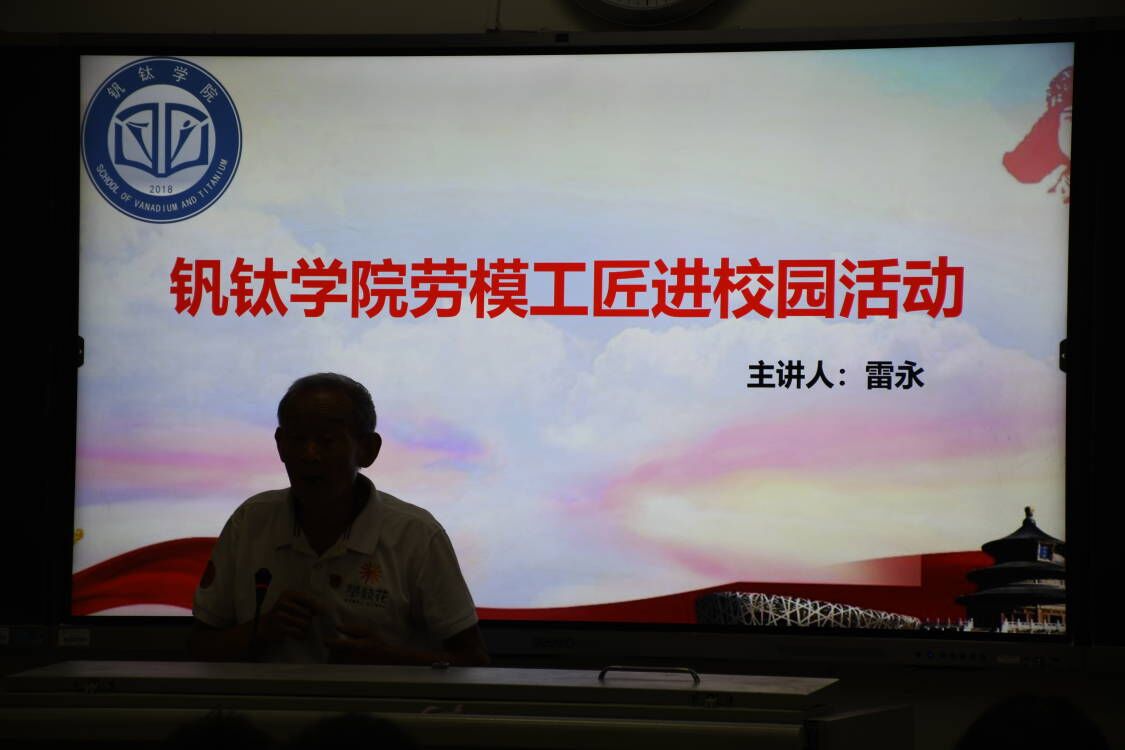 雷永老师为我们分享了参加三线建设背景下,面对气候炎热,公路不通,喝水需要靠人背,粮食运输全靠牲畜,睡觉只能枕扁担的艰苦条件下,先辈们克服困难,艰苦奋斗,迎难而上奉献青春建设攀枝花的发展历程,让同学们感受并领悟勤勉敬业的劳动精神,以劳模做榜样,坚信学习的信念,树立远大理想,把个人梦想与中国梦有机结合,在成就自我的的同时为国家民族的伟大复兴贡献自己的力量。