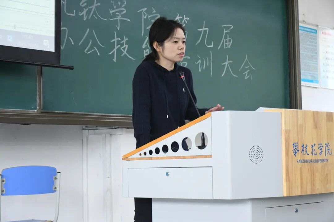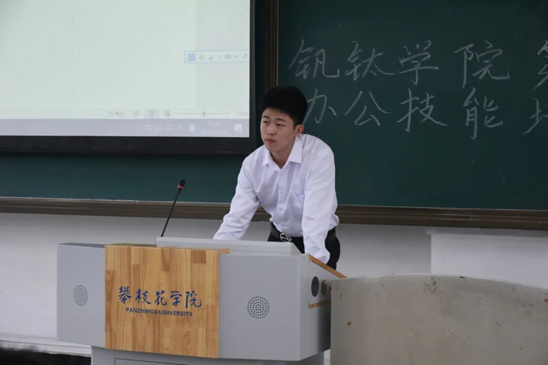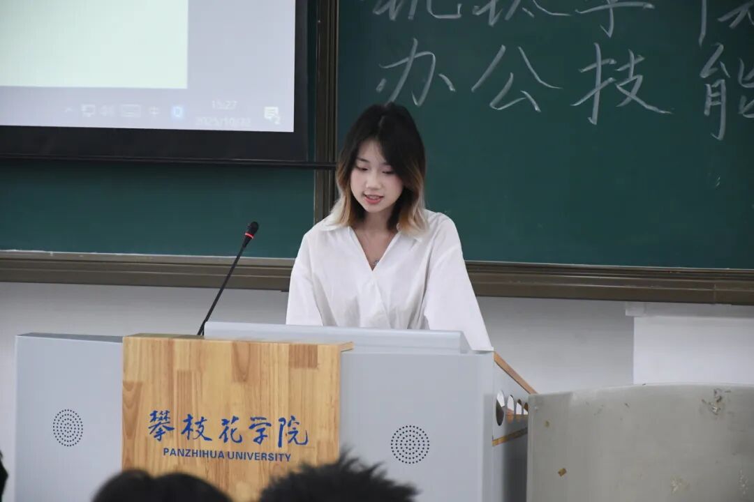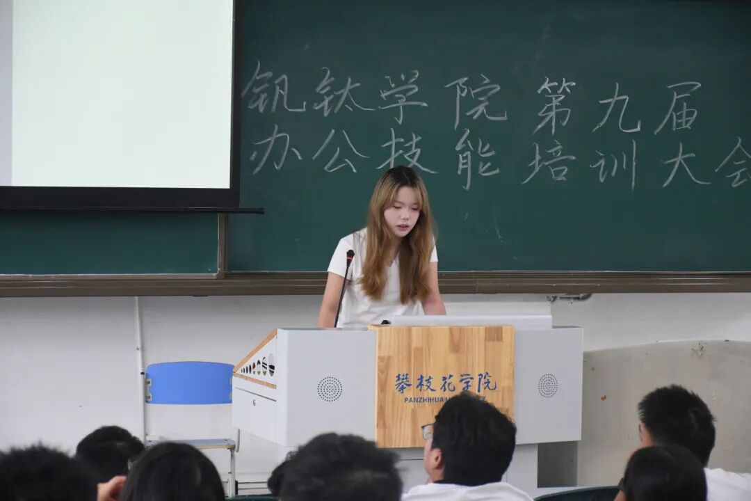 团课结束后,办公技能专题培训随即展开。本次培训立足员工工作实际,设置了四大核心模块。主席团代表牟忠祥在发言中首先对各位新干事的加入表示热烈欢迎。他指出:“本次培训大会不仅是你们角色转变的‘第一课’,更是赋能成长、凝聚力量的‘加油站’。站在新的起点,掌握扎实的技能是履行职责、服务同学的基石,也是我们组织永葆活力、不断创新的源泉。”随后,华韵汉服社杜娅菲同学首先讲解了活动策划书的撰写规范与流程要点;学术创新部赵珈庚同学围绕Word、Excel、PPT三大办公软件进行实操指导,涵盖文档排版、函数运用及演示文稿设计等内容;钒华主持人队邓腾雨同学就职场沟通礼仪、会议规范等进行了生动讲解;宣传部罗雨希同学针对许可证申请流程及常见问题作了清晰梳理。