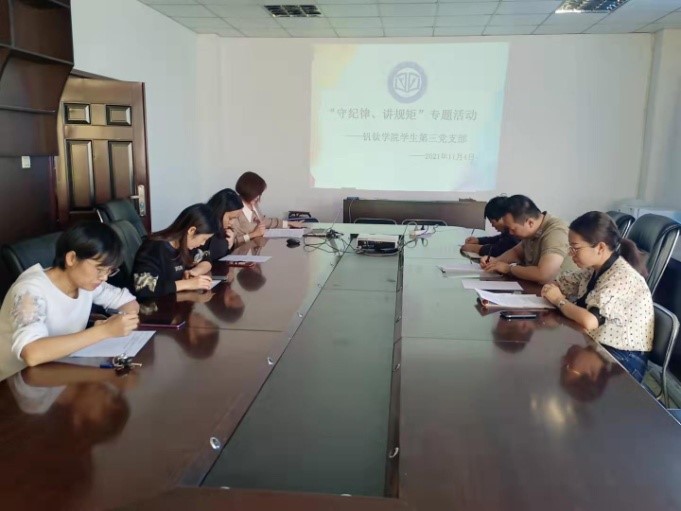 员工第三党支部于2021年11月4日在励志楼三楼会议室召开“守纪律,讲规矩“专题讨论会,本次会议由周兰花书记主持。