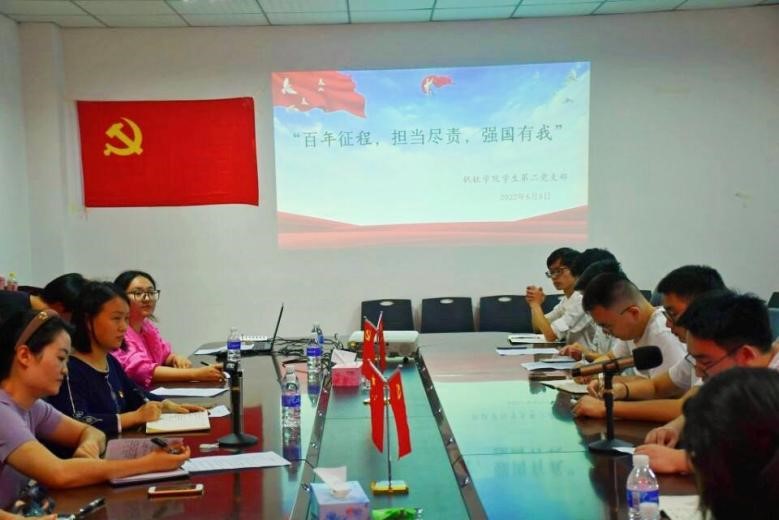 党员毕业生代表赵海萍等 5位同志围绕“百年征程,担当尽责,强国有我”分享了自己的学习了习近平总书记在建团100周年的讲话后的心得体会,告诉我们要不忘初心、牢记使命,时刻心系党和国家,为实现中华民族伟大复兴而不懈奋斗。