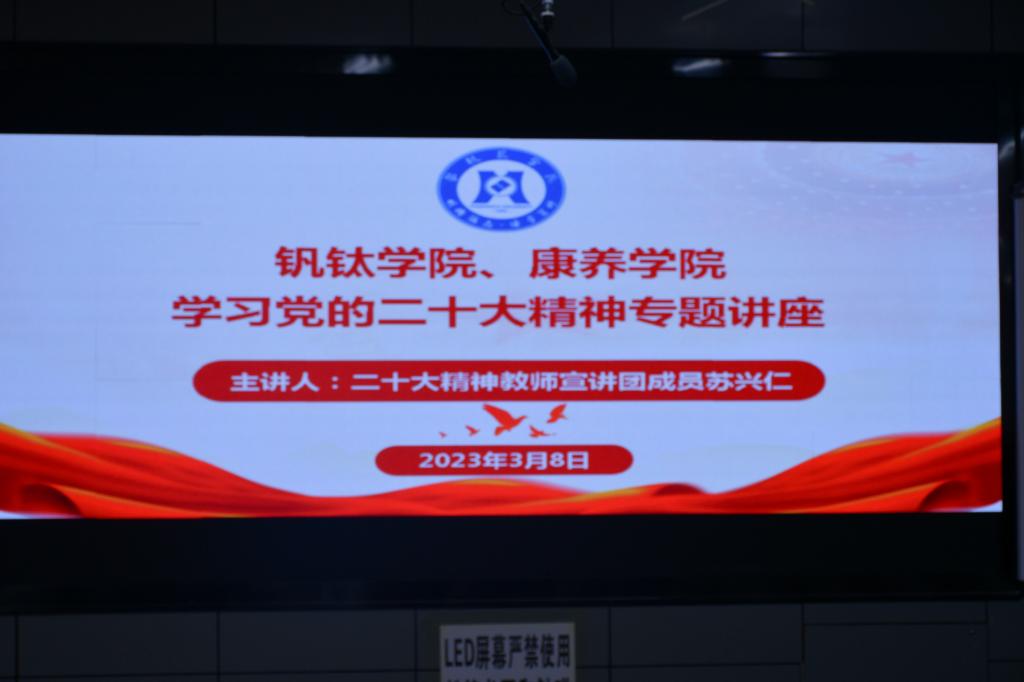 3月8日,yl1111永利集团、康养公司党员师生代表200余人在2-1举行学习党的二十大精神专题讲座,党委组织部部长、二十大精神宣讲团成员苏兴仁担任主讲。