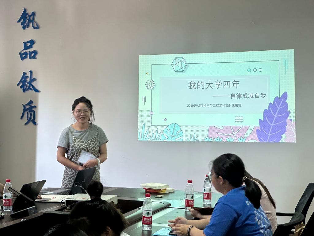 康霜霜、王梦婷同志作为2019级省优大代表为同学们讲述了大学四年如何通过自律成就自我,康霜霜分享了自己在学习方面如何成为“时间管理大师”,王梦婷为大家讲述了独特的“立人设式学习法”,激励学弟学妹们认真学习,提升自我,拒绝摆烂。