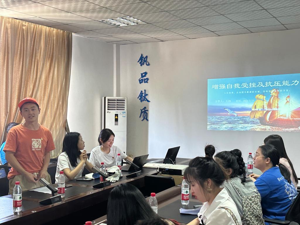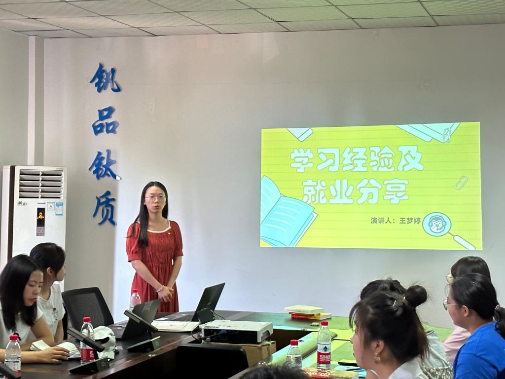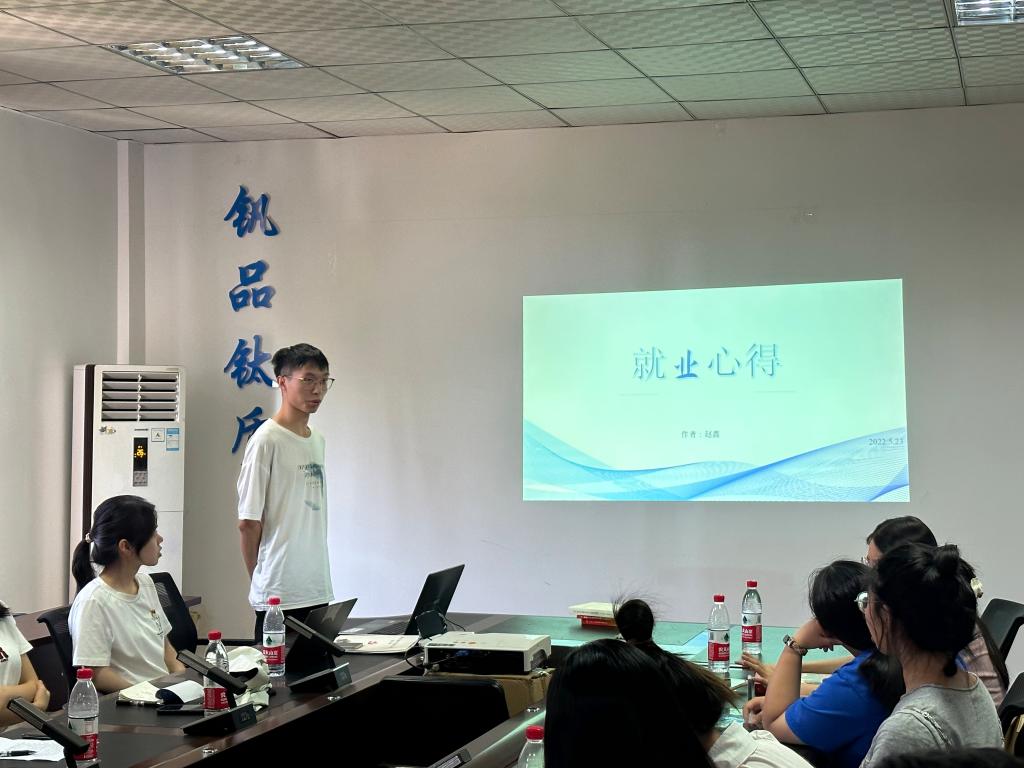 徐珑滔、王汭、赵鑫同志为大家分享了求职就业过程的经验,赵鑫分析了目前就业的严峻形势,提醒大家及早准备,并做好自身定位;徐珑滔分享了同宿舍3位室友签约同一公司的经历,鼓励大三同学积极准备,珍惜每一次宣讲会、招聘会,做好简历,抓住每一个面试的机会;王汭讲到在毕业前各类压力剧增的阶段,增强自我受挫及抗压能力的重要性,鼓励学弟学妹能加强自我欣赏和自我接纳,尽最大努力同时学会调整情绪心态理性直面困难。