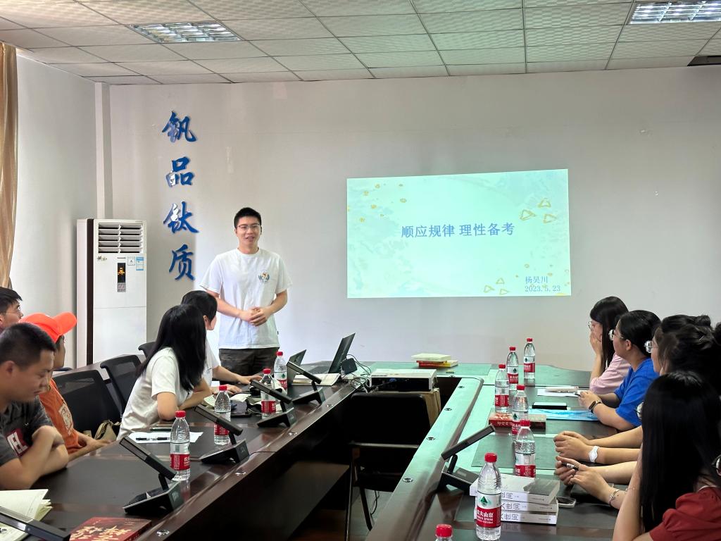 梅杨林、罗琴同志主要从情绪管理、考研调剂等方面给同学们提出一些建议,梅杨林同志讲到考研过程遭遇困难和挫折时,我们应该学会倾诉自己的情感,寻求支持和帮助,同时,也需要学会接受负面情绪,并采取积极的方式来缓解压力;罗琴同志分享了考研初试成绩出来后调剂院校的定位、如何寻找、如何匹配适合自己的院校,鼓励学弟学妹在关键时期一定要调整心态,耐住心,沉住气,积极争取自己的第二选择。