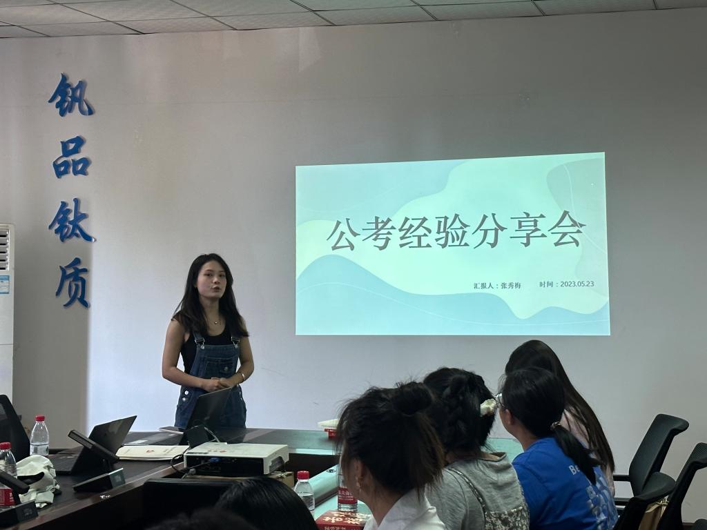 姚丹、张秀梅、刘鑫同志为大家分享了考取公务员的经验和体会,详细介绍了如何选岗位、笔试、面试备考重点等,姚丹讲到“考公不能是一时兴起,下定决心后,要全力备考,公务员竞争激烈,不努力成功就是别人的”;刘鑫同志作为退伍员工代表成功考取重庆公安,从个人亲身经历讲述曾经在部队丰富的军旅生活,同时也做了征兵宣传,为大三同学介绍了老员工入伍后,未来多样化的发展方向。