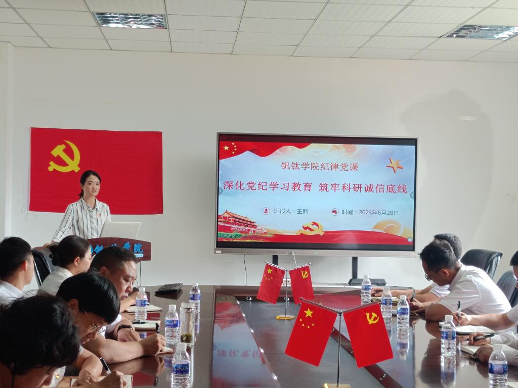 本次党纪教育专题党课,深度融合了党纪学习和科研诚信及师德师风建设,全体教工党员将党纪内化于心,积极践行科研诚信,做一名合格科研人,将持续在钒钛国家战略资源综合利用开发研究工作中积极贡献自身力量。