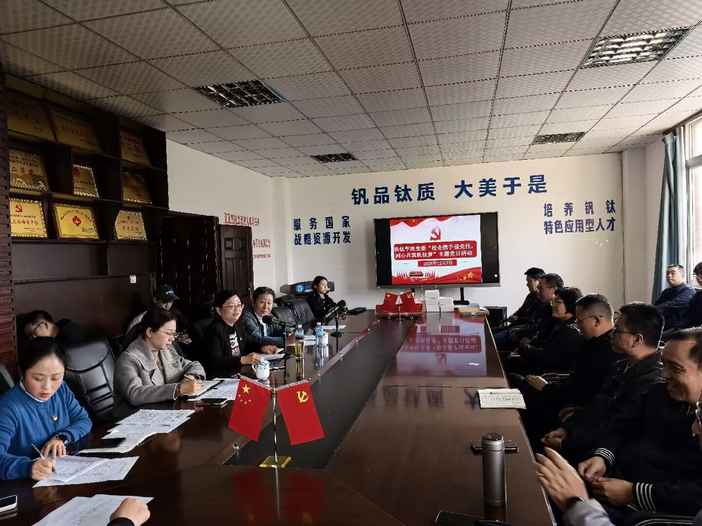 为深入学习贯彻党的二十大精神,进一步加强党员党性修养,推动校企党建共建走深走实,2025年12月3日下午,yl1111永利集团在励志楼303会议室举行“校企携手强党性,同心共筑钒钛梦”主题党日活动。公司全体师生党员与攀钢钛金属公司企业专家党员共同参加,活动由公司党委副书记马兰主持。