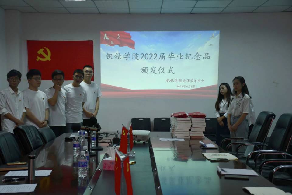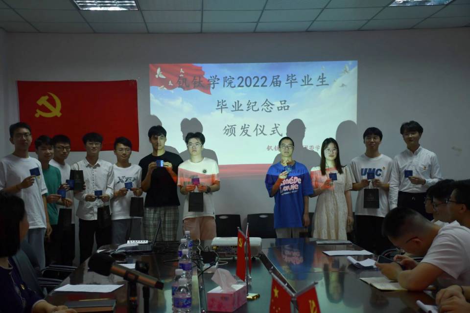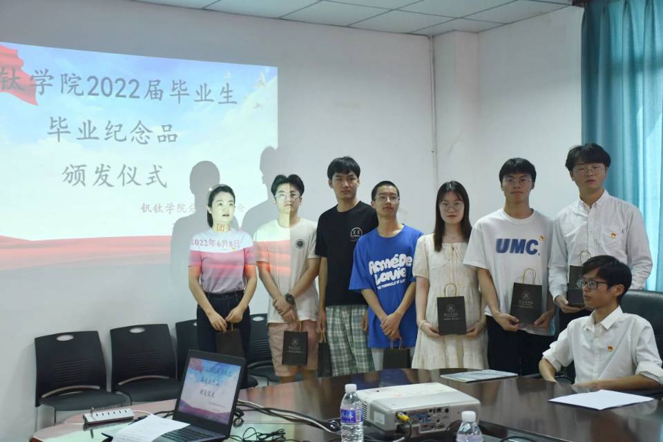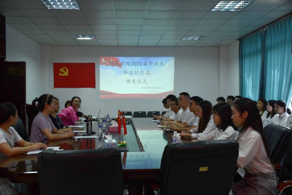 2022年6月8日,本院于砺志楼305举行2018级毕业纪念品颁发仪式。党委书记王鹃、副经理蒋燕出席,2022届部分毕业生参加。