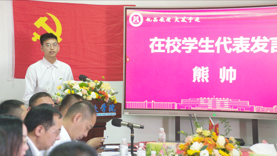 会上,20级冶金工程专业熊帅同学作为在校员工代表发言,他表示身为攀大学子的我们有理由为攀大流光溢彩的漫漫征程而骄傲,为它经历了四十年风雨而自豪,为它一路走来的铿锵而歌唱。