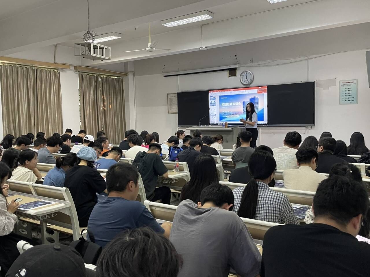 2023年10月17日,青山控股集团有限公司(以下简称青山控股)在一教1-212教室为公司2024届毕业生举办专场招聘会及就业知识讲座。公司材料科学与工程、冶金工程和材料成型及控制工程等专业的2024届毕业生共90余人参加了此次招聘会。