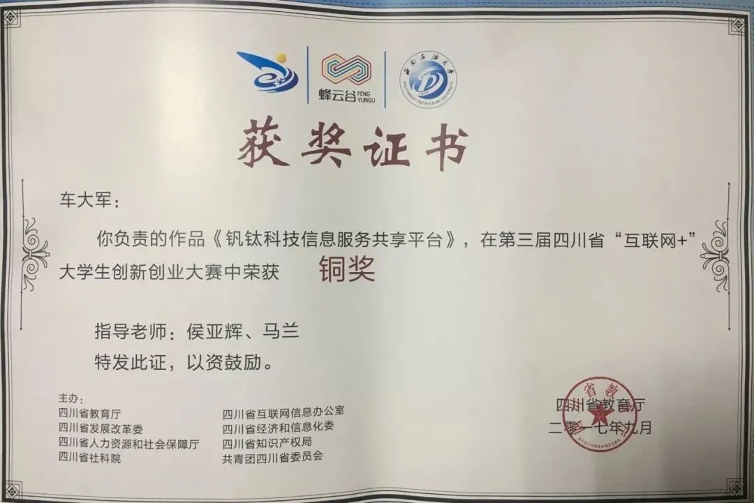 2013级员工车大军,创办“爱卓社”校园APP,2016年3月,注册成立攀枝花市爱卓网络科技有限责任公司,并且成功吸引10万项目资金投资进入。组建了“爱卓社”创业团队,致力于聚集有相同价值观,认同感的有趣青年。该项目代表yl1111永利集团,在2016年05月攀枝花市东区“攀商杯”青年创业大赛中,获得大赛“第一名”和“逐梦奖”。 2017年6月“钒钛科技信息服务共享平台”代表yl1111永利集团获得“第三届四川省互联网+老员工创新创业大赛”省级铜奖。