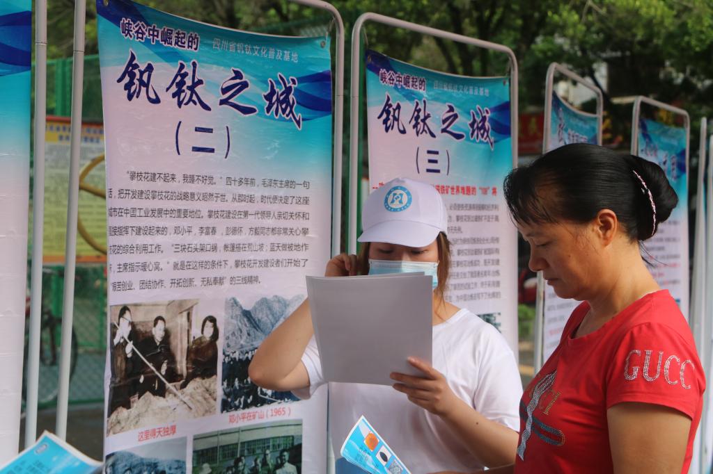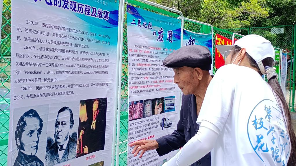 “我们这个年纪,对钒钛知识的了解比很多年轻人还多一些,攀枝花市是国家钒钛资源非常丰富的地方,从70年代到现在我看到了我们这里有着巨大的变化,我也非常高兴看到你们年轻人来这里给我们普及钒钛知识。”一位经历了三线建设的老前辈一边听着讲解一边和小分队成员交谈着。