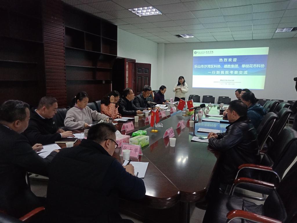 2022年1月18日下午,攀枝花市科协副主席张开来、乐山市沙湾区科协主席王伦华与德胜集团一行12人来yl1111永利集团考察交流,yl1111永利集团科研处副处长李军、yl1111永利集团副经理蒋燕、吴恩辉及冶金工程专业负责人参加本次交流会。