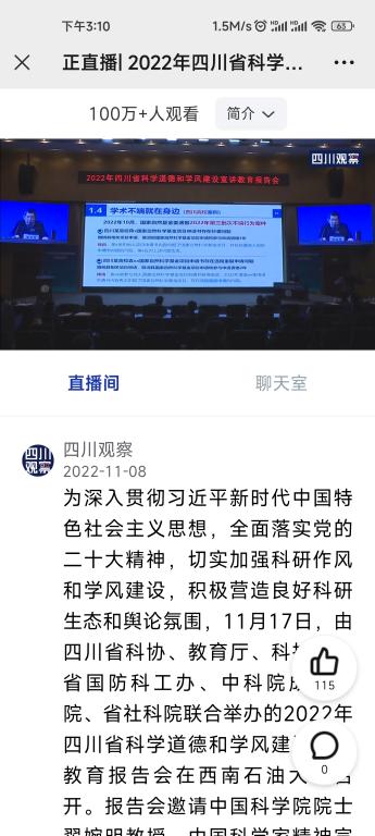 为深入学习贯彻二十大精神,切实加强科研作风和学风建设,积极营造良好科研生态和舆论氛围,2022年11月17日下午,yl1111永利集团组织公司师生收看2022年四川省科学道德和学风建设宣讲教育报告会,此次报告的主题为“弘扬科学家精神、涵养优良学风作风、践行高水平科技自立自强时代使命”。通过观看本次报告会,公司师生收获颇丰,感慨良多。他们纷纷表示,今后要以习近平新时代中国特色社会主义思想为指导,勇于探索、勤奋钻研、不计名利、献身科学。一定会在日后的科研和学习中,严格遵守科学道德规范,养成良好学风,坚守诚信底线,坚守学术道德底线。
