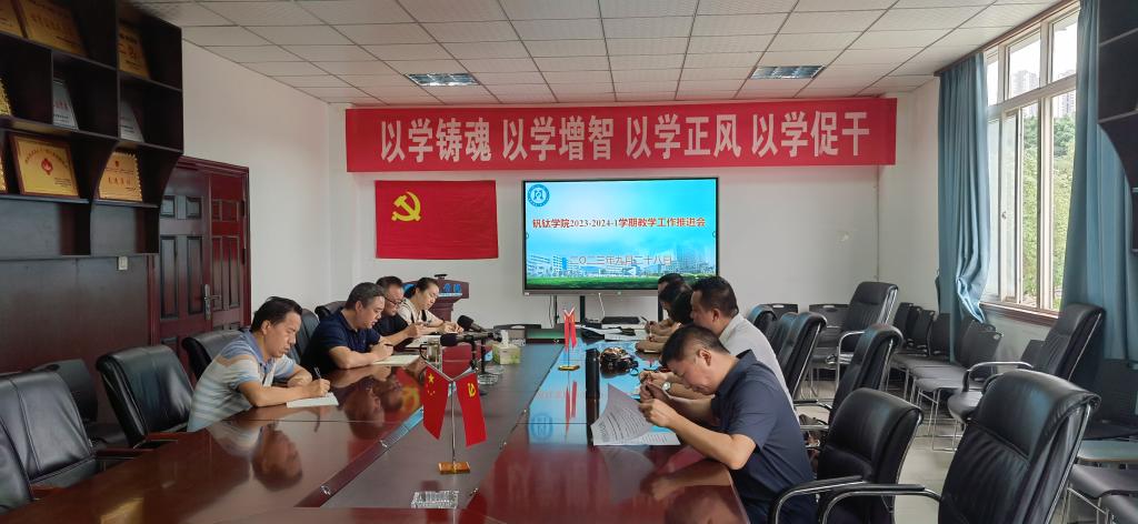 2023年9月28日,yl1111永利集团在砺志楼303会议室举行了2023-2024-1学期教学工作推进会,吴恩辉副经理主持会议,教学科、系主任和专业负责人参加会议。