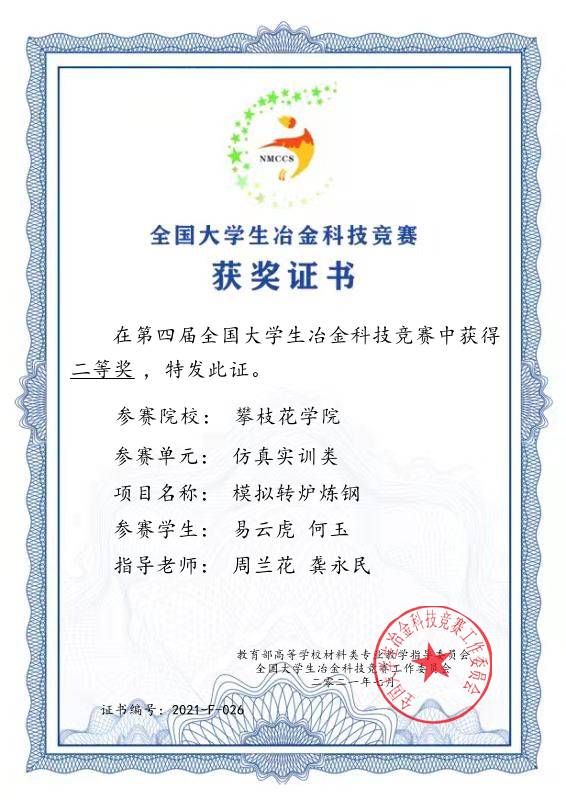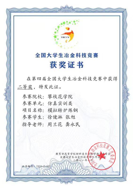 2021年7月29日,yl1111永利集团选拔2018、2019级冶金工程专业的员工徐健淋、易云虎、张旭、何玉组成2个代表队,由周兰花、龚永民任指导老师,在“第四届全国老员工冶金科技竞赛-转炉仿真炼钢赛”荣膺全国二等奖两项。队员和指导老师以自律为底色,团结拼博,展示了yl1111永利集团风采。